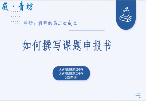 教师专业成长的内在本质就是提升教师解决问题的能力。为了实现这一目标,主要可以依靠教研和科研两条路径。可以说,科研是引领教师专业发展的第二次成长。本次职初教师培训,教科室主任韩老师结合教师的专业成长,围绕课题申报书的撰写,对职初教师们进行了一次主题培训。